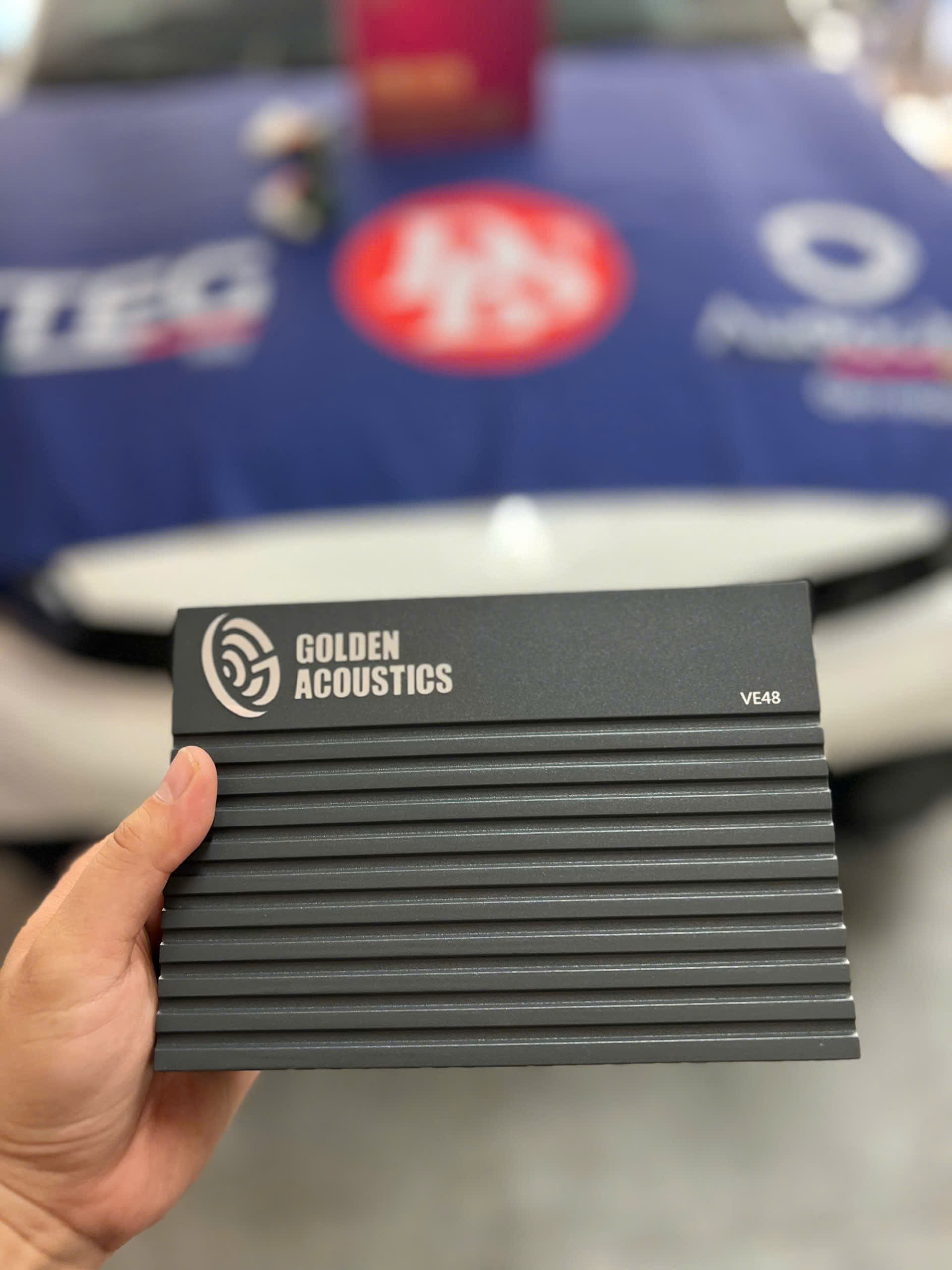 Chủ xe Golden Acoustics VE48 chọn ampli tích hợp DSP dòng Golden Acoustics VE48. Ngoài chức năng chính là kéo công suất cho loa cánh, Golden Acoustics VE48 còn giúp người dùng căn chỉnh hệ thống âm thanh như độ cân bằng, độ trễ. Từ đó mang đến trải nghiệm âm thanh chính xác hơn.