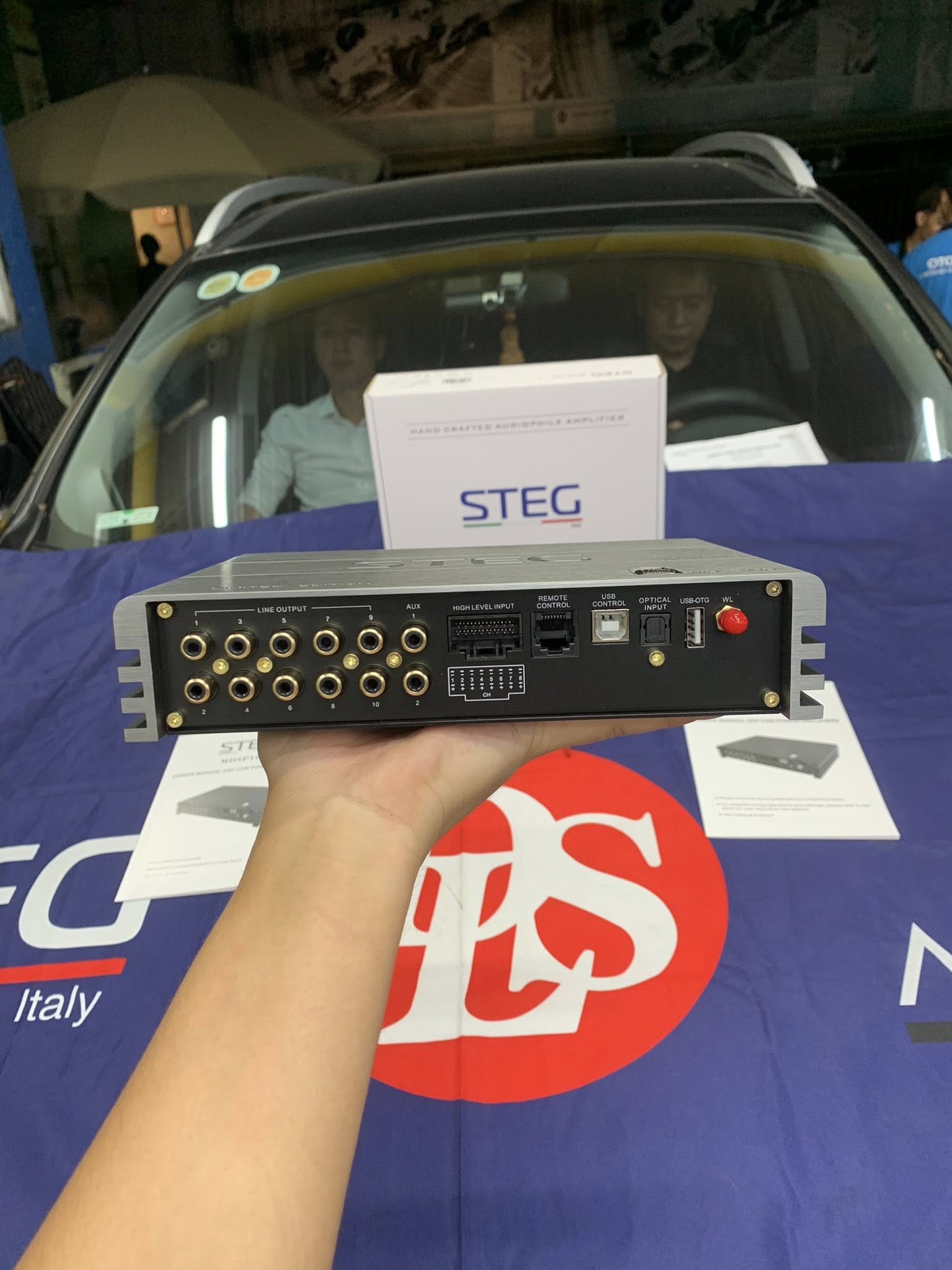 Chủ xe Honda CRV chọn ampli tích hợp DSP dòng STEG MDSP10D. Ngoài chức năng chính là kéo công suất cho loa cánh, STEG MDSP10D còn giúp người dùng căn chỉnh hệ thống âm thanh như độ cân bằng, độ trễ. Từ đó mang đến trải nghiệm âm thanh chính xác hơn.