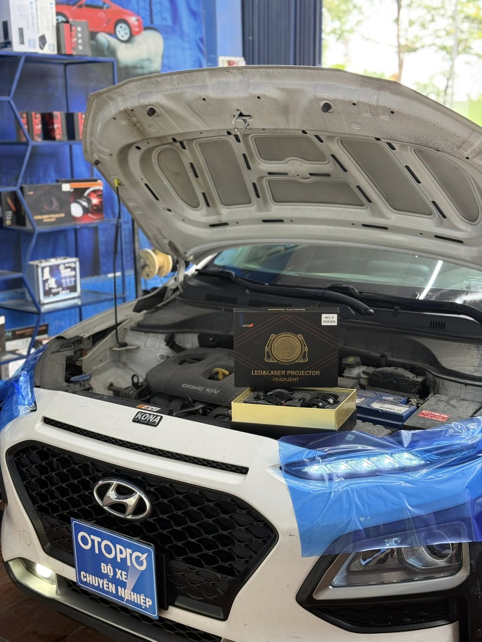 Độ đèn tăng sáng đang là xu thế hiện nay của các chủ xế, với mong muốn xế yêu của mình luôn cung cấp đủ ánh sáng khi di chuyển trong màn đêm. Chiếc Hyundai Kona trong bài viết được trang bị sẵn hệ thống đèn pha LED, ánh sáng chỉ ở mức cơ bản cho khả năng quan sát đường không được tốt. Sau khi được OtoPro tư vấn một số mẫu đèn pha, chủ xe đã quyết định độ đèn Hyundai Kona với cặp bi gầm W1S