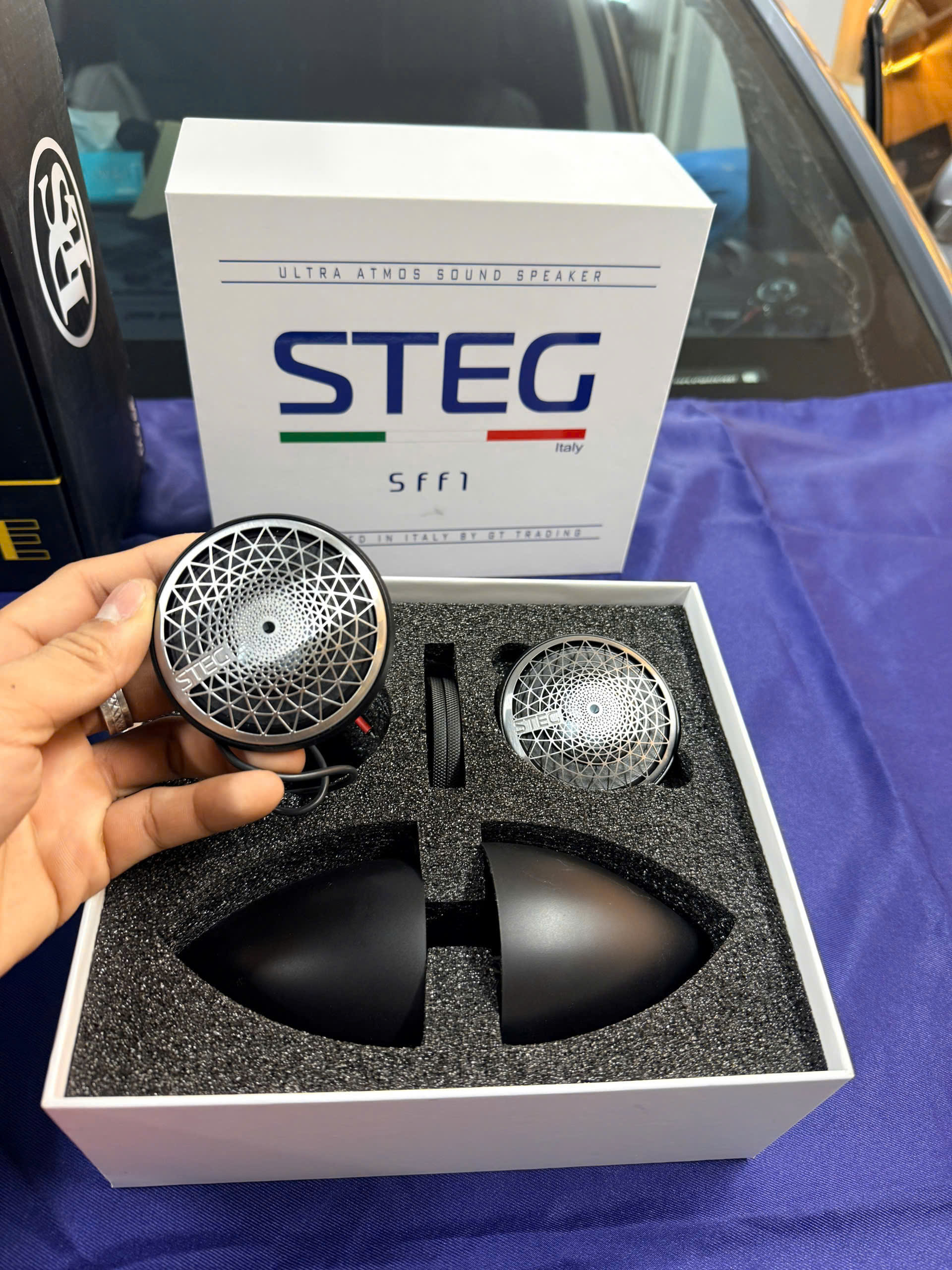 Loa Mid - Treble ô tô là bộ phận tái tạo dải âm mid - chính xác hơn là tập trung cho giọng hát của ca sĩ thêm chân thực, trong trẻo hơn. Chính vì vậy, loa trung tâm được lắp trên chiếc này là loa STEG SFF1 của Italy có công suất 25 Watts, lắp tại vị trí cột A của xe