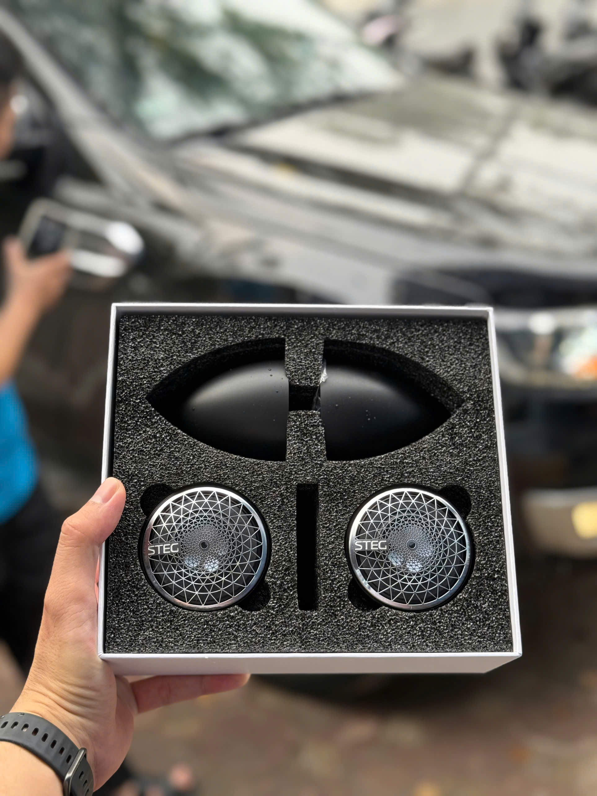 Loa Mid - Treble ô tô là bộ phận tái tạo dải âm mid - chính xác hơn là tập trung cho giọng hát của ca sĩ thêm chân thực, trong trẻo hơn. Chính vì vậy, loa trung tâm được lắp trên chiếc này là loa STEG SFF1 của Italy có công suất 25 Watts, lắp tại vị trí cột A của xe