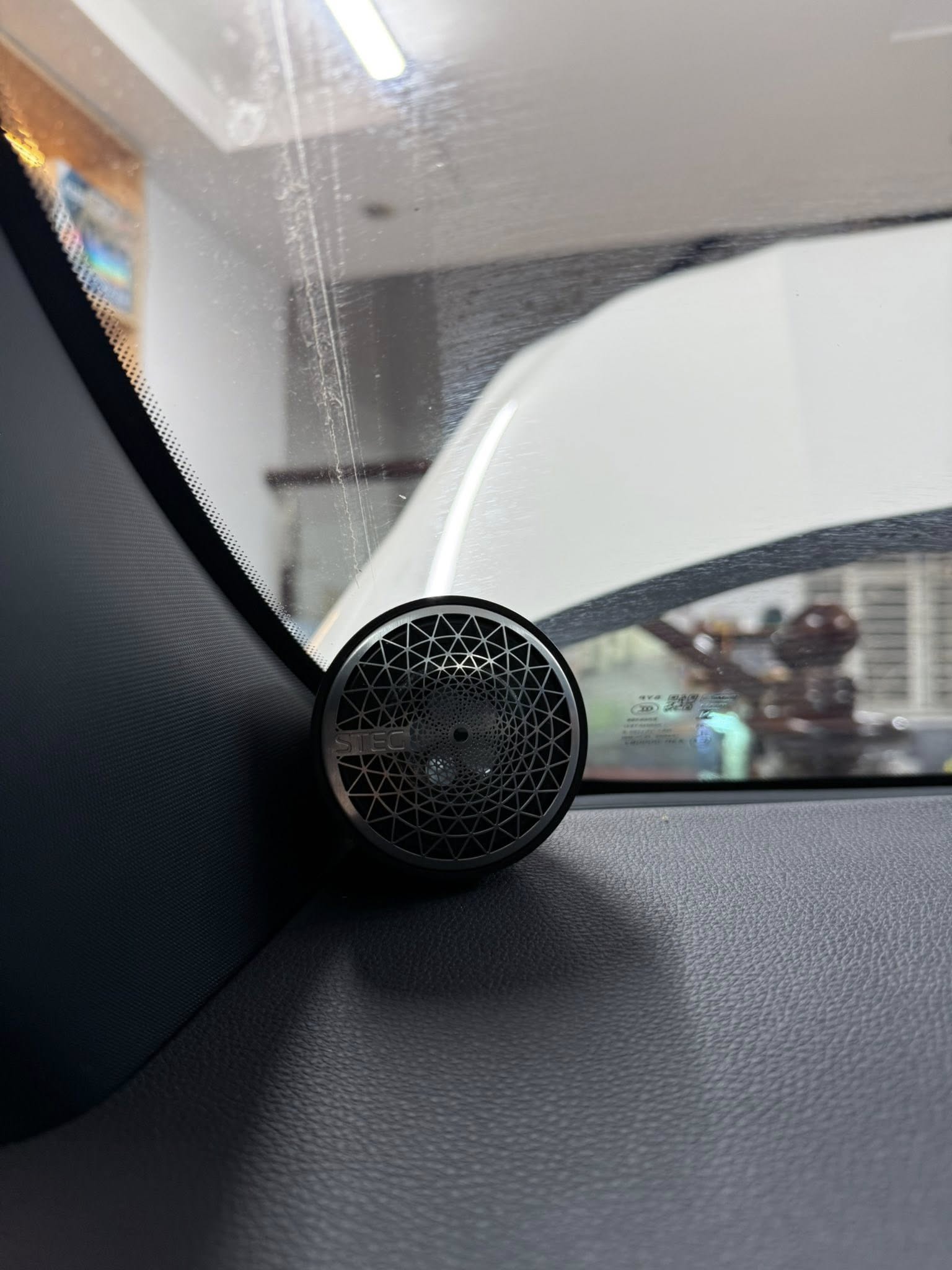 Loa Mid - Treble ô tô là bộ phận tái tạo dải âm mid - chính xác hơn là tập trung cho giọng hát của ca sĩ thêm chân thực, trong trẻo hơn. Chính vì vậy, loa trung tâm được lắp trên chiếc này là loa STEG SFF1 của Italy có công suất 25 Watts, lắp tại vị trí cột A của xe
