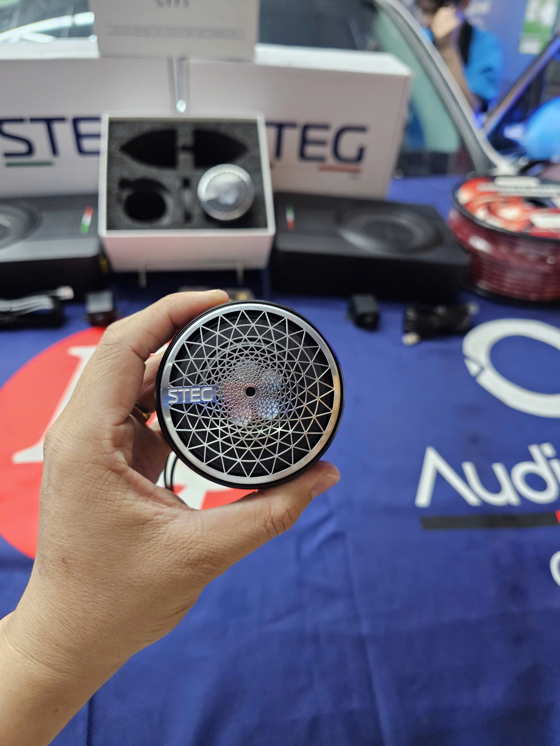 Loa Mid - Treble ô tô là bộ phận tái tạo dải âm mid - chính xác hơn là tập trung cho giọng hát của ca sĩ thêm chân thực, trong trẻo hơn. Chính vì vậy, loa trung tâm được lắp trên chiếc này là loa STEG SFF1 của Italy có công suất 25 Watts, lắp tại vị trí cột A của xe