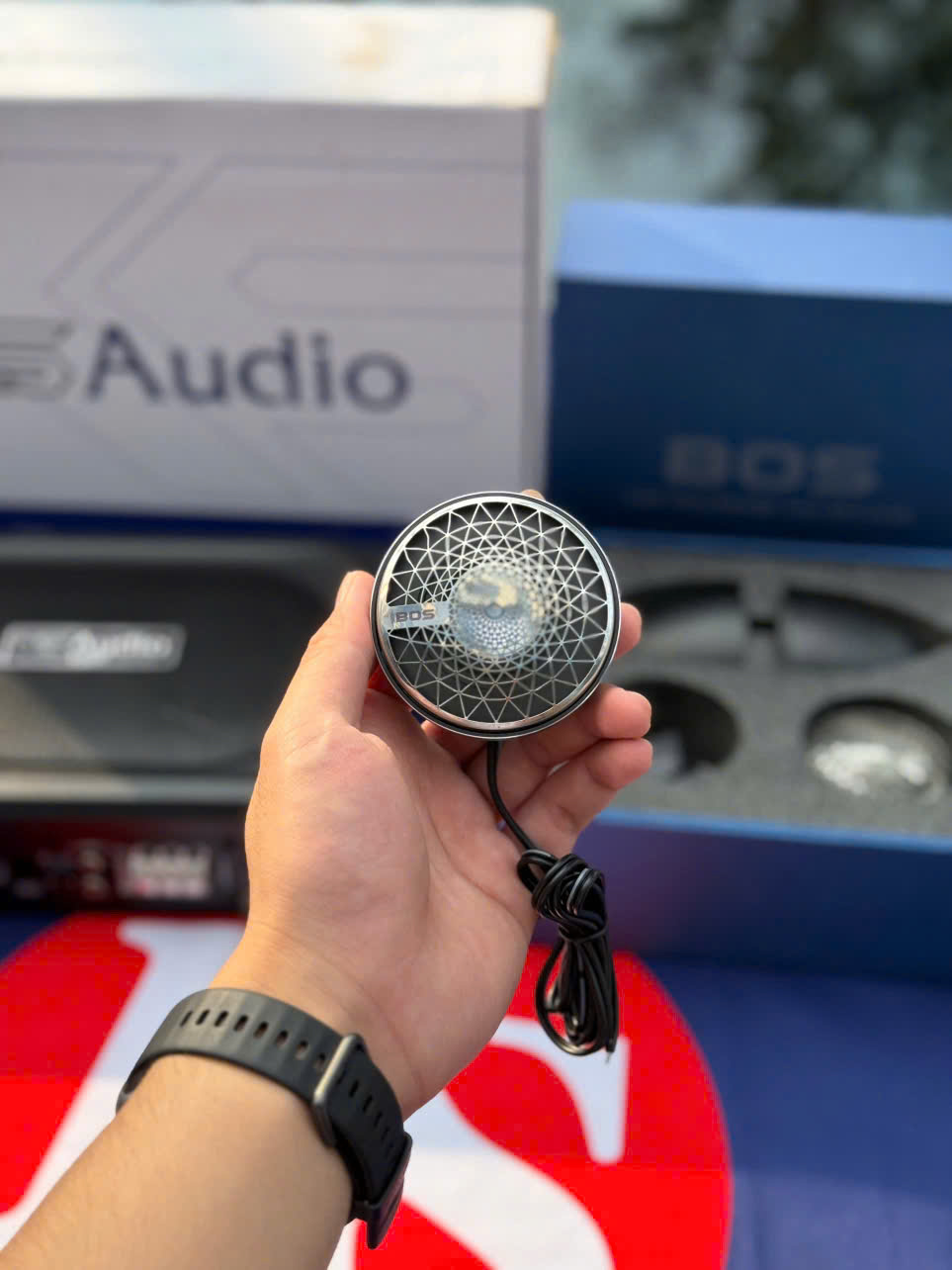 Loa Mid - Treble ô tô là bộ phận tái tạo dải âm mid - chính xác hơn là tập trung cho giọng hát của ca sĩ thêm chân thực, trong trẻo hơn. Chính vì vậy, loa trung tâm được lắp trên chiếc này là loa BOS của có công suất 25 Watts, lắp tại vị trí cột A của xe