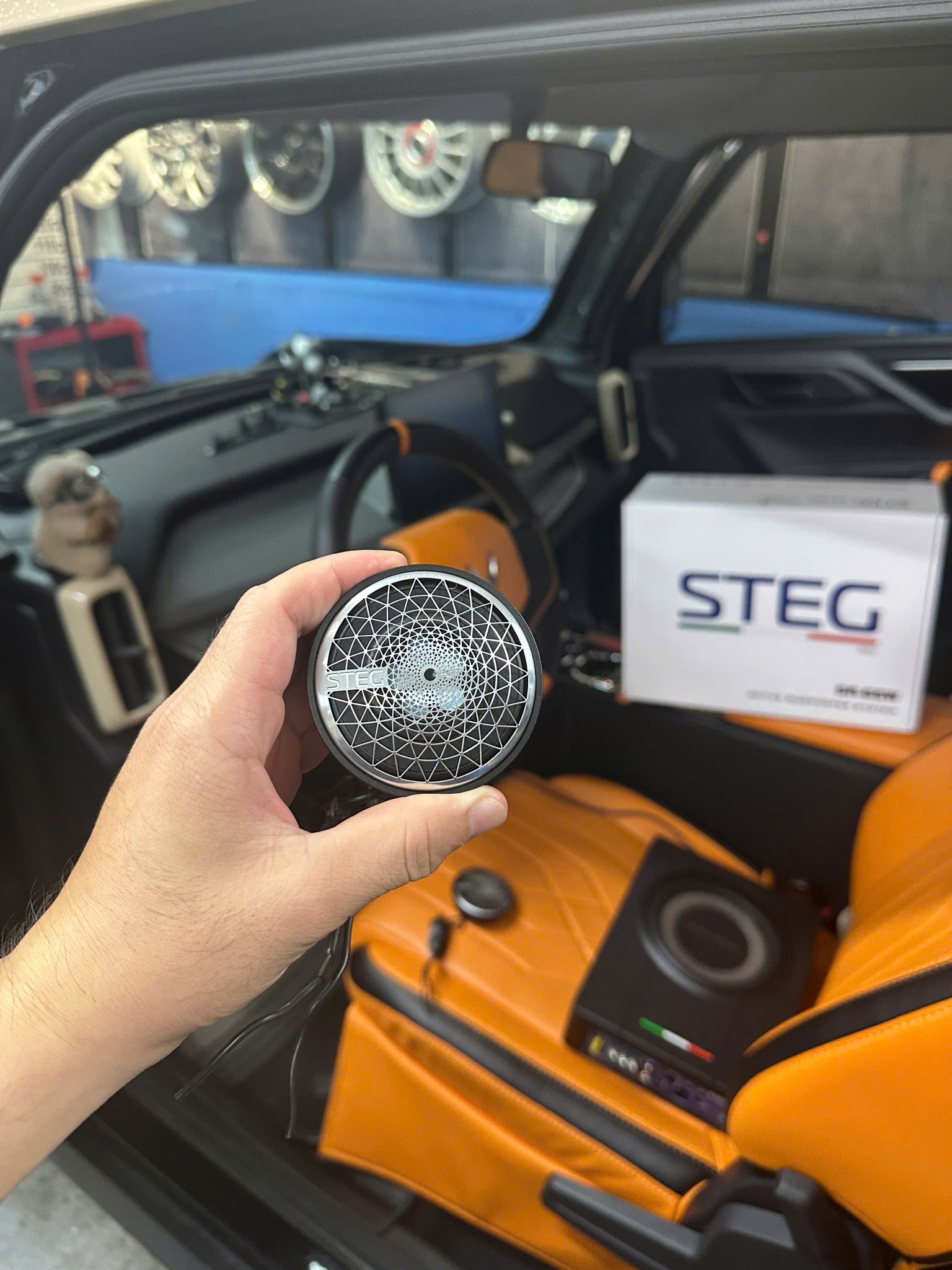 Loa Mid - Treble ô tô là bộ phận tái tạo dải âm mid - chính xác hơn là tập trung cho giọng hát của ca sĩ thêm chân thực, trong trẻo hơn. Chính vì vậy, loa trung tâm được lắp trên chiếc này là loa STEG SFF1 của Italy có công suất 25 Watts, lắp tại vị trí cột A của xe