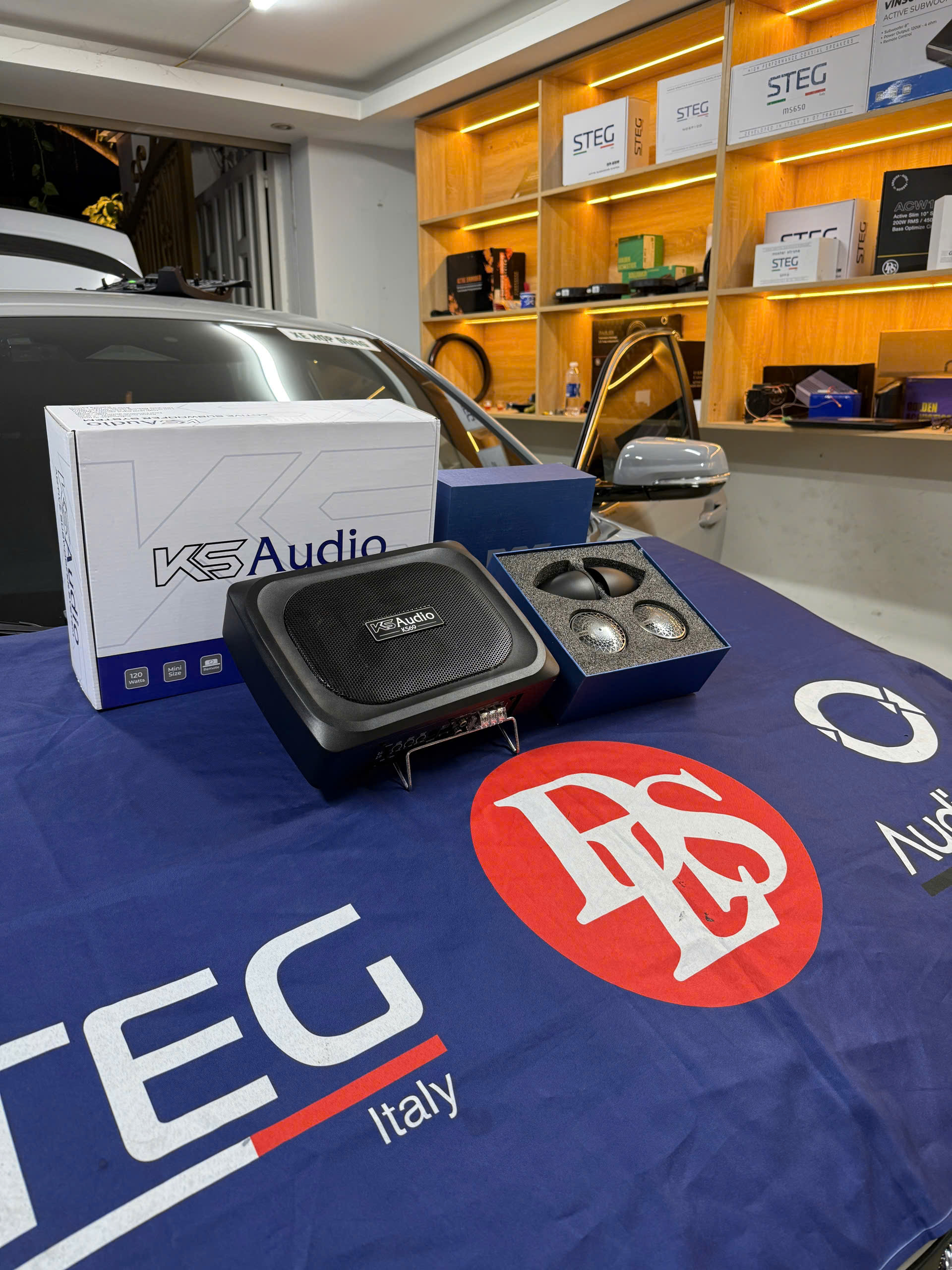Loa sub điện là bộ phận tái tạo dải âm trầm - siêu trầm trong hệ thống âm thanh xe hơi. Loa sub điện gồm 1 loa subwoofer và 1 ampli tích hợp sẵn, được đóng trong thùng. Đường kính loa sub điện ô tô thường là 8 hoặc 10 inch. Các dòng loa sub điện trên thị trường thường có công suất RMS khoảng 150 Watts, công suất Max khoảng 400 Watts. Nhờ tích hợp sẵn cùng ampli trong thùng nên 1 bộ loa sub điện có kích thước nhỏ gọn, dễ lắp đặt. Loa sub điện tường được lắp ở dưới ghế phụ hoặc chỗ để chân ghế phụ. Chiếc xe (xe) trong bài viết sử dụng loa sub điện KS Audio KS69, đường kính loa sub 10 inch, công suất RMS 200W.