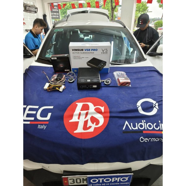 Loa sub điện là bộ phận tái tạo dải âm trầm - siêu trầm trong hệ thống âm thanh xe hơi. Loa sub điện gồm 1 loa subwoofer và 1 ampli tích hợp sẵn, được đóng trong thùng. Đường kính loa sub điện ô tô thường là 8 hoặc 10 inch. Các dòng loa sub điện trên thị trường thường có công suất RMS khoảng 150 Watts, công suất Max khoảng 400 Watts. Nhờ tích hợp sẵn cùng ampli trong thùng nên 1 bộ loa sub điện có kích thước nhỏ gọn, dễ lắp đặt. Loa sub điện tường được lắp ở dưới ghế phụ hoặc chỗ để chân ghế phụ. Chiếc xe (xe) trong bài viết sử dụng loa sub điện Vinsub VS8 Pro, đường kính loa sub 10 inch, công suất RMS 200W.