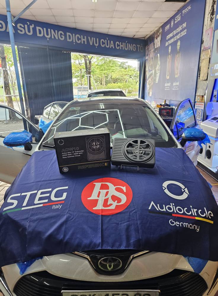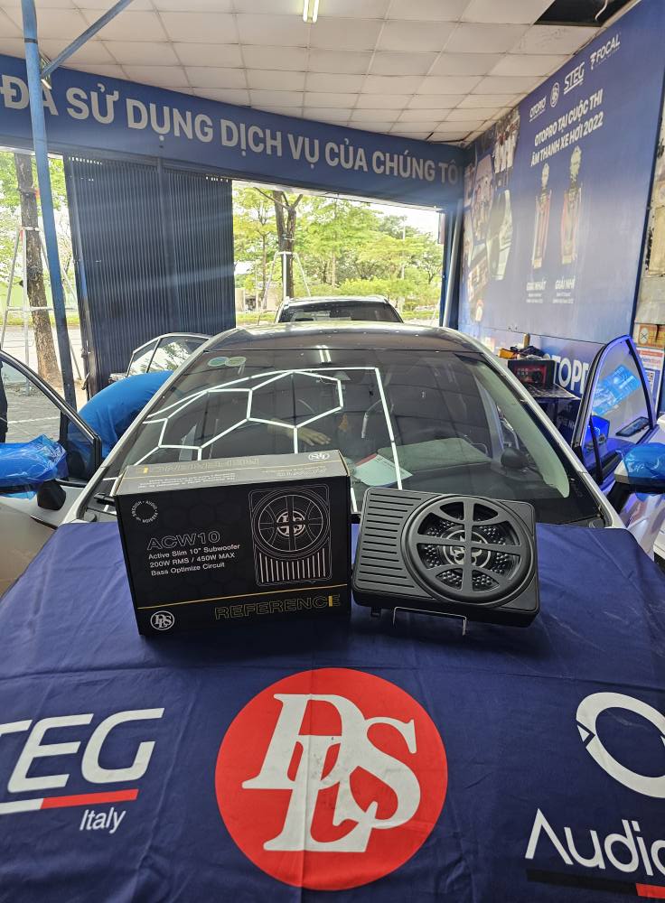 Loa sub điện là bộ phận tái tạo dải âm trầm - siêu trầm trong hệ thống âm thanh xe hơi. Loa sub điện gồm 1 loa subwoofer và 1 ampli tích hợp sẵn, được đóng trong thùng. Đường kính loa sub điện ô tô  thường là 8 hoặc 10 inch. Các dòng loa sub điện trên thị trường thường có công suất RMS khoảng 150 Watts, công suất Max khoảng 400 Watts. Nhờ tích hợp sẵn cùng ampli trong thùng nên 1 bộ loa sub điện có kích thước nhỏ gọn, dễ lắp đặt. Loa sub điện tường được lắp ở dưới ghế phụ hoặc chỗ để chân ghế phụ. Chiếc xe Toyota Altis 2022 trong bài viết sử dụng loa sub điện DLS ACW10, đường kính loa sub 10 inch, công suất RMS 200W.