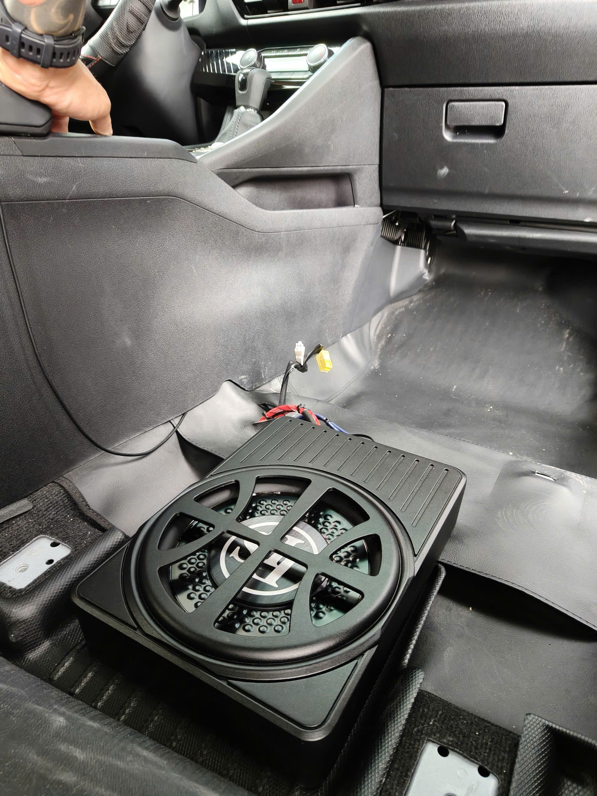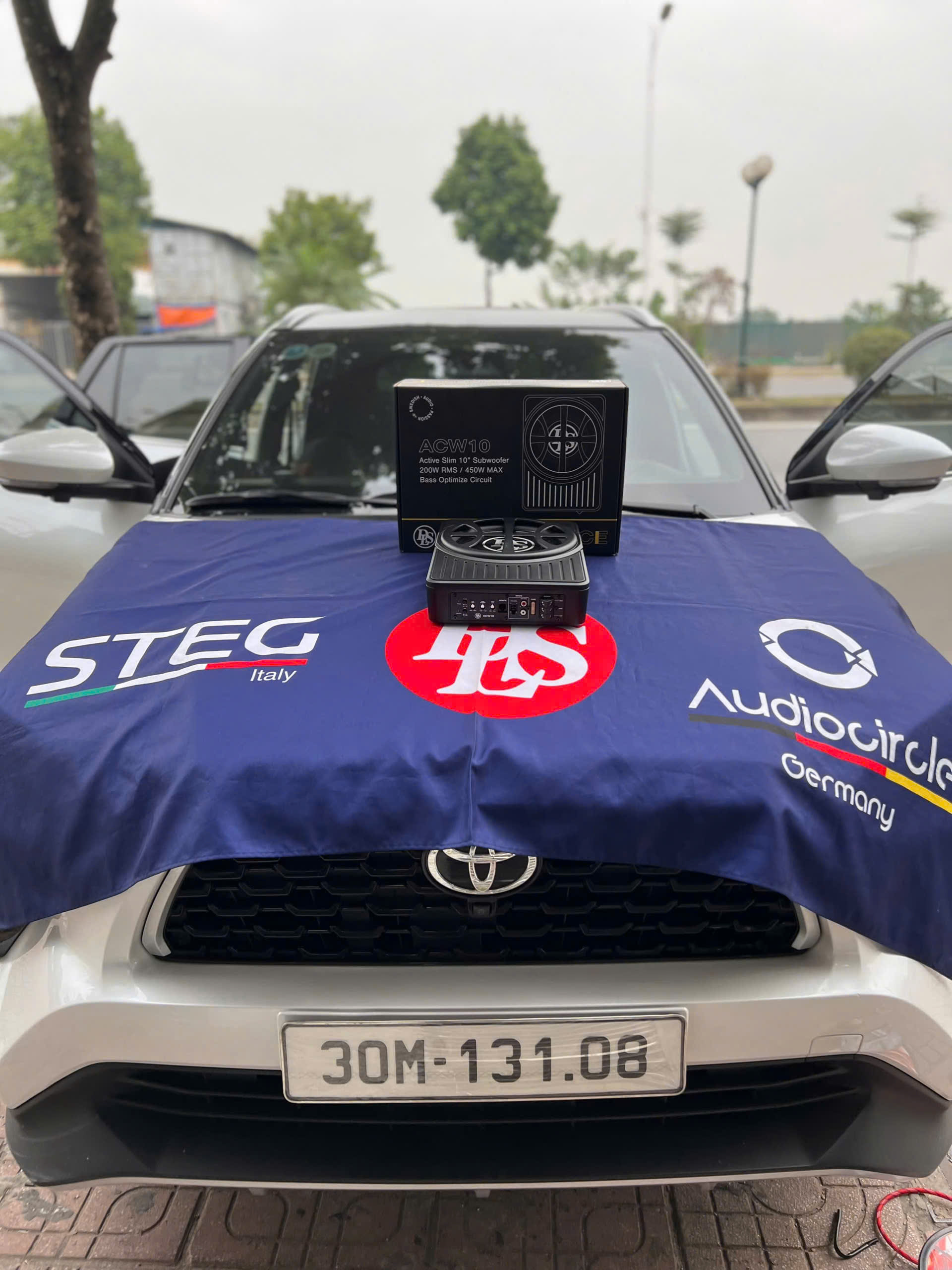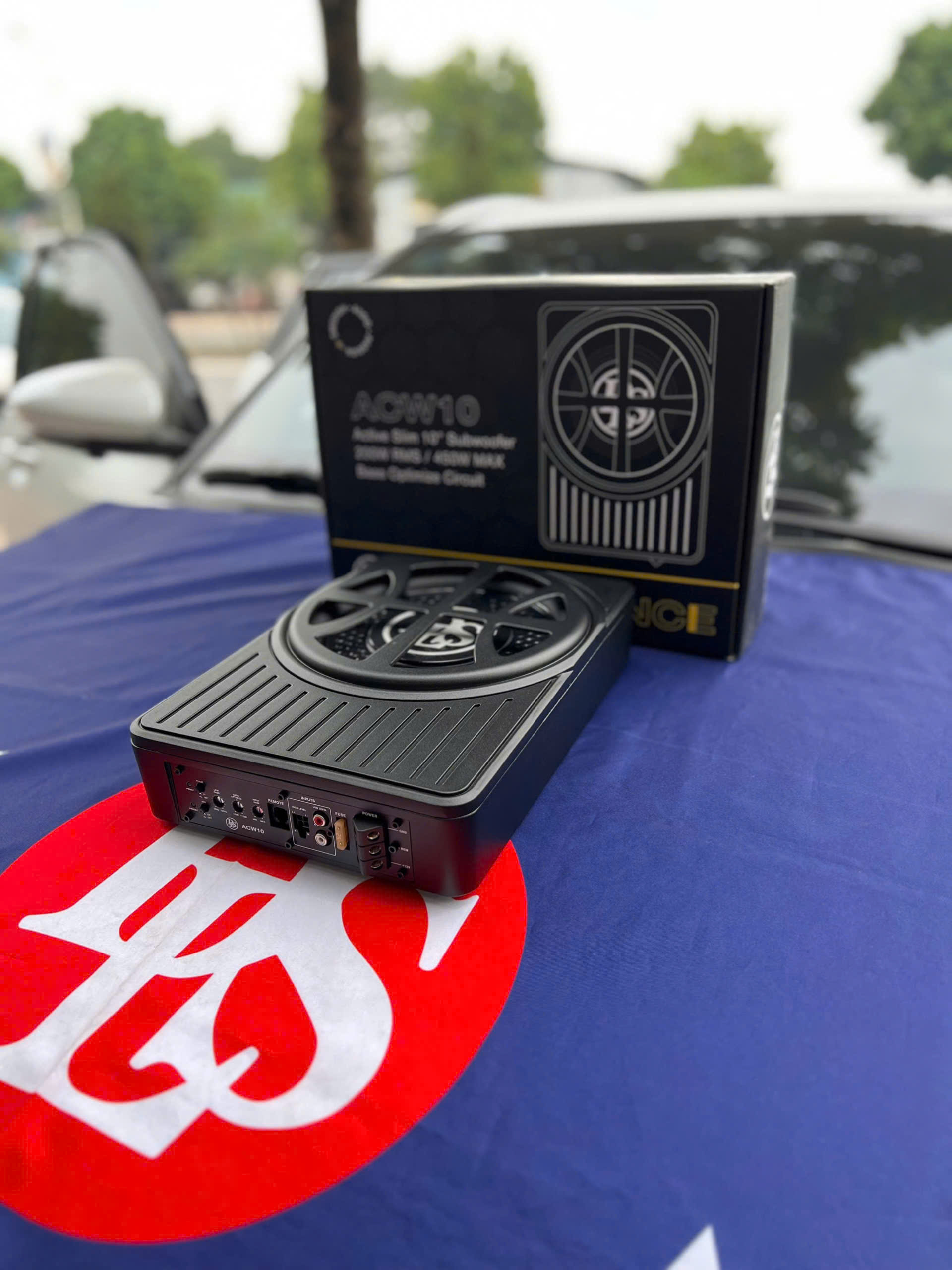 Loa sub điện là bộ phận tái tạo dải âm trầm - siêu trầm trong hệ thống âm thanh xe hơi. Loa sub điện gồm 1 loa subwoofer và 1 ampli tích hợp sẵn, được đóng trong thùng. Đường kính loa sub điện ô tô thường là 8 hoặc 10 inch. Các dòng loa sub điện trên thị trường thường có công suất RMS khoảng 150 Watts, công suất Max khoảng 400 Watts. Nhờ tích hợp sẵn cùng ampli trong thùng nên 1 bộ loa sub điện có kích thước nhỏ gọn, dễ lắp đặt. Loa sub điện tường được lắp ở dưới ghế phụ hoặc chỗ để chân ghế phụ. Chiếc xe (xe) trong bài viết sử dụng loa sub điện DLS ACW10 đường kính loa sub 10 inch, công suất RMS 200W.