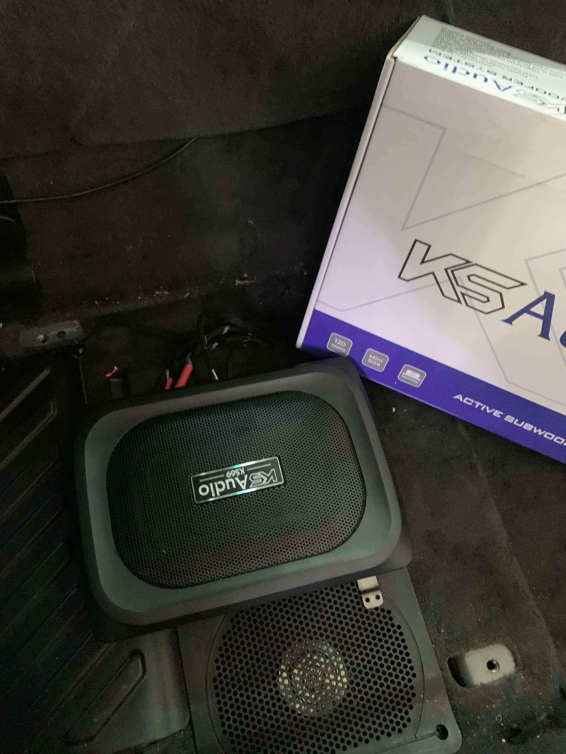 Loa sub điện là bộ phận tái tạo dải âm trầm - siêu trầm trong hệ thống âm thanh xe hơi. Loa sub điện gồm 1 loa subwoofer và 1 ampli tích hợp sẵn, được đóng trong thùng. Đường kính loa sub điện ô tô thường là 8 hoặc 10 inch. Các dòng loa sub điện trên thị trường thường có công suất RMS khoảng 150 Watts, công suất Max khoảng 400 Watts. Nhờ tích hợp sẵn cùng ampli trong thùng nên 1 bộ loa sub điện có kích thước nhỏ gọn, dễ lắp đặt. Loa sub điện tường được lắp ở dưới ghế phụ hoặc chỗ để chân ghế phụ. Chiếc xe (xe) trong bài viết sử dụng loa sub điện KS Audio KS69, đường kính loa sub 10 inch, công suất RMS 200W.