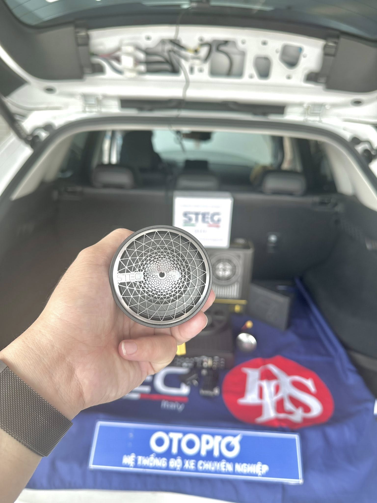 Loa Mid - Treble ô tô là bộ phận tái tạo dải âm mid - chính xác hơn là tập trung cho giọng hát của ca sĩ thêm chân thực, trong trẻo hơn. Chính vì vậy, loa trung tâm được lắp trên chiếc này là loa STEG SFF1 của Italy có công suất 25 Watts, lắp tại vị trí cột A của xe.