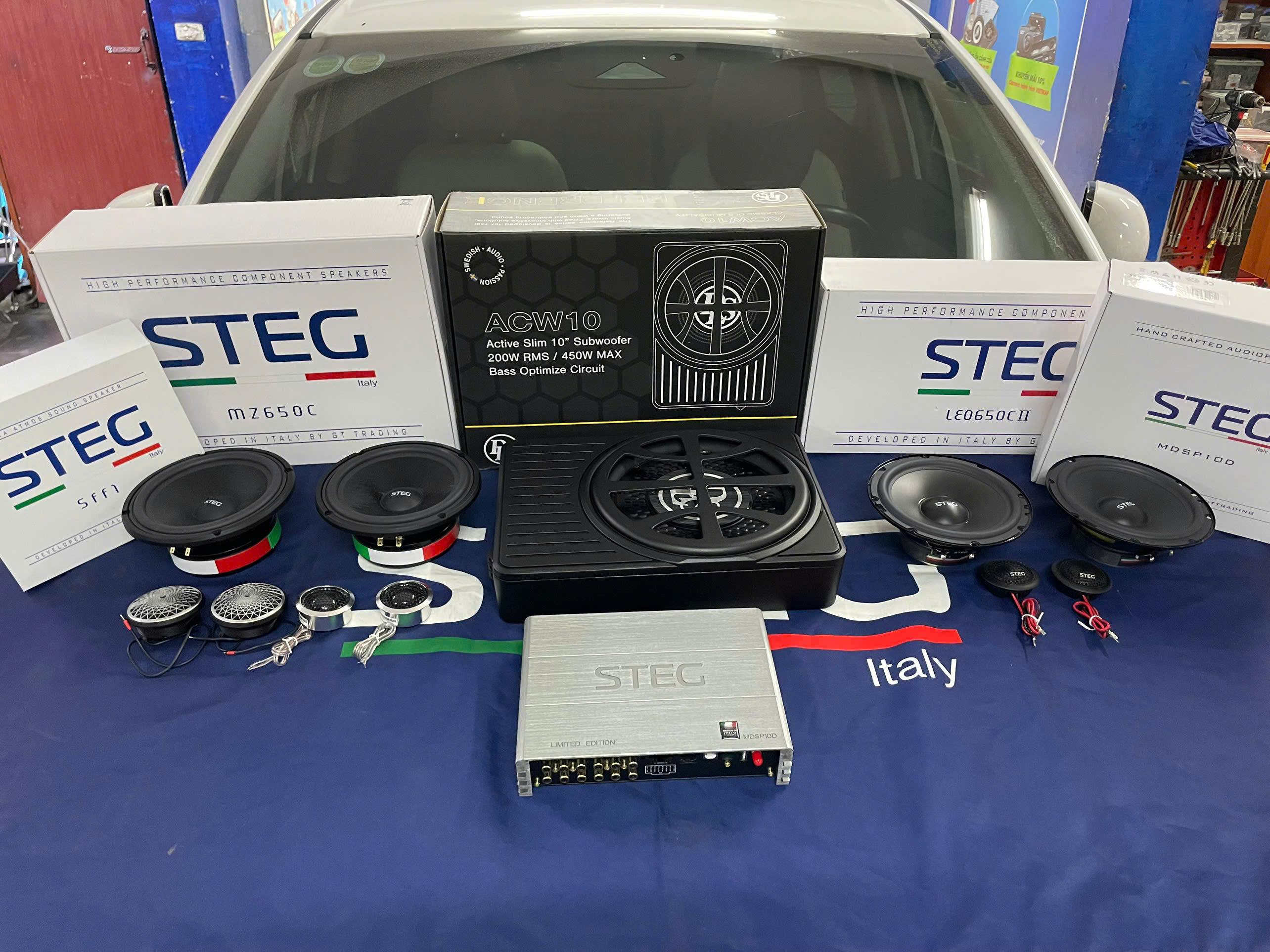 Loa Mid - Treble ô tô là bộ phận tái tạo dải âm mid - chính xác hơn là tập trung cho giọng hát của ca sĩ thêm chân thực, trong trẻo hơn. Chính vì vậy, loa trung tâm được lắp trên chiếc này là loa STEG SFF1 của Italy có công suất 25 Watts, lắp tại vị trí cột A của xe