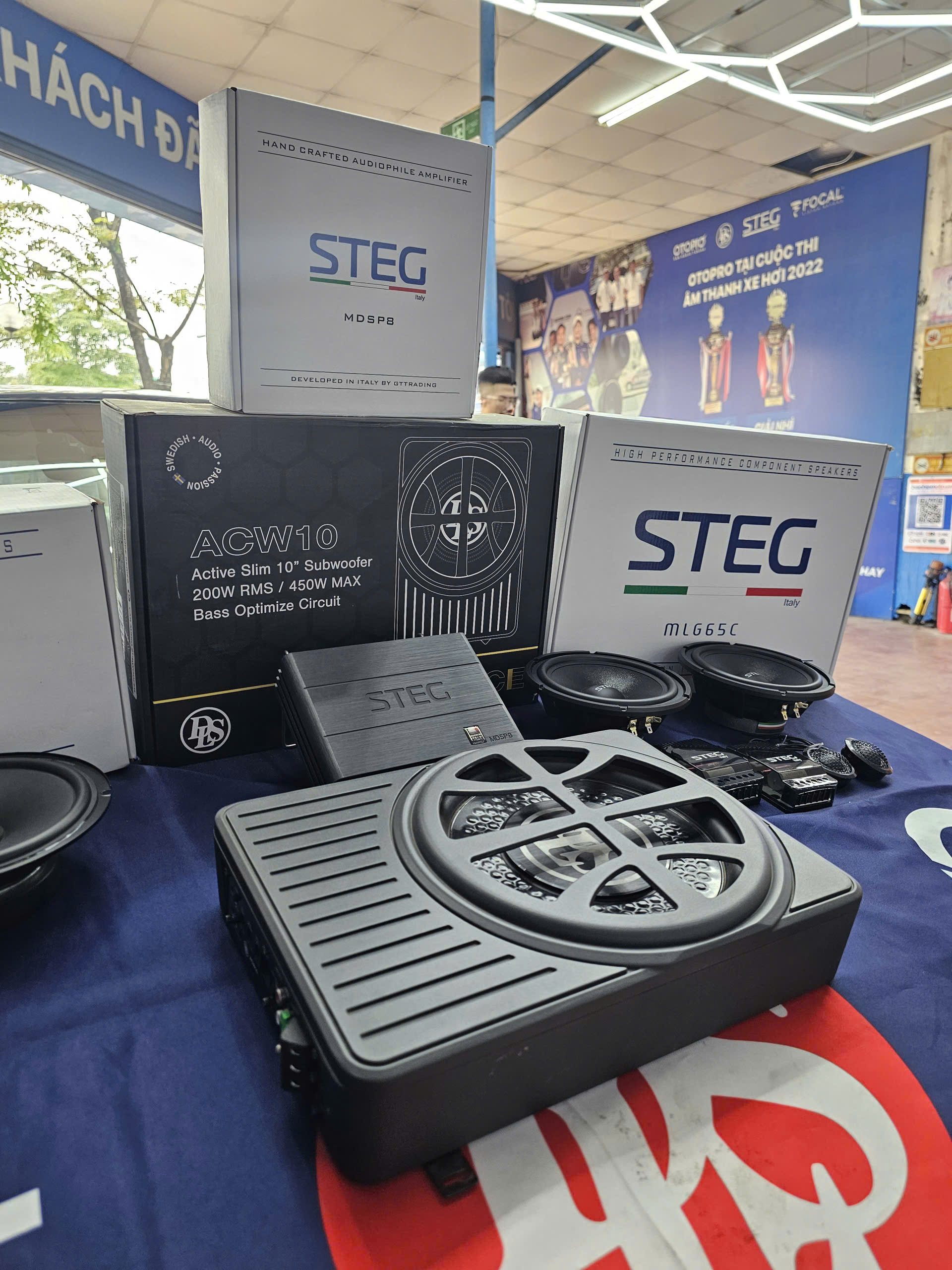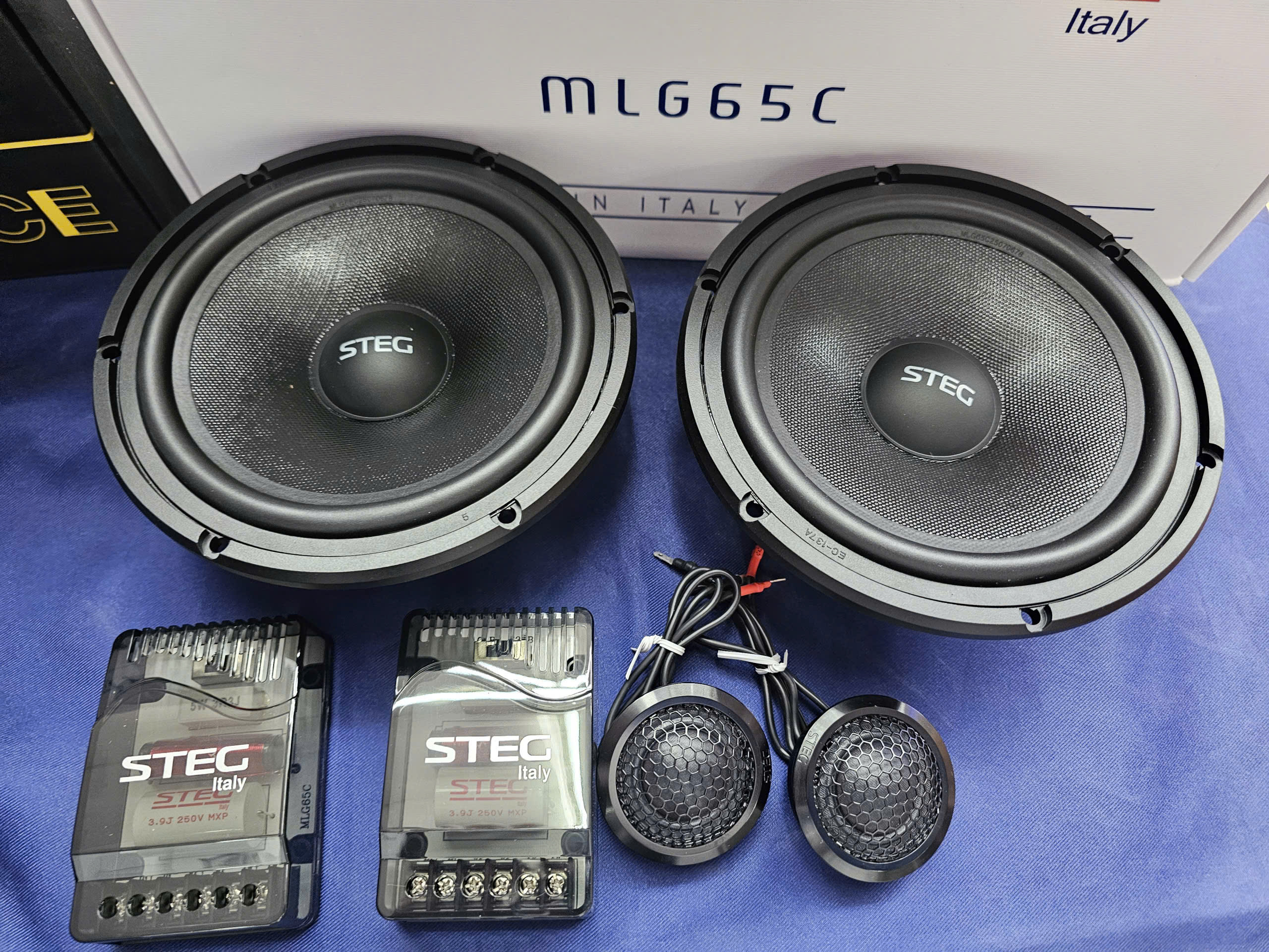 • Cặp loa cánh trước trong cấu hình này là STEG MLG 65C, loa 2 đường tiếng (2-way). Bộ loa gồm 2 loa mid-bass và 2 loa treble.