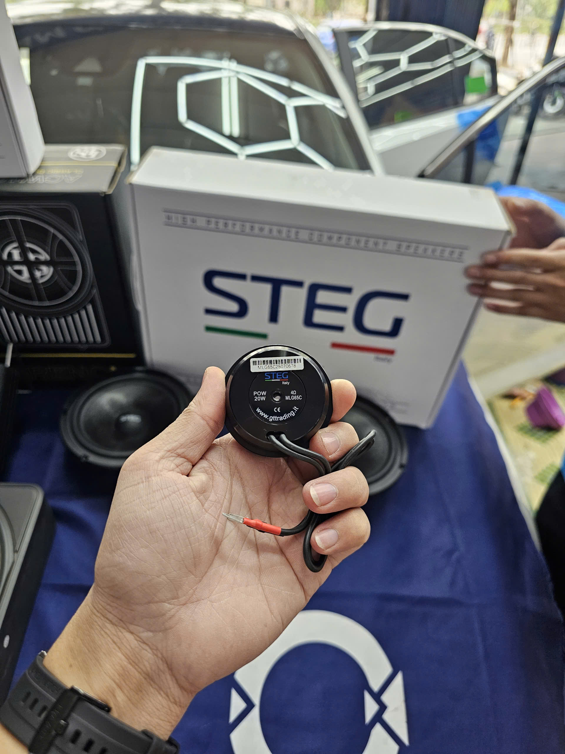 Loa Mid - Treble ô tô là bộ phận tái tạo dải âm mid - chính xác hơn là tập trung cho giọng hát của ca sĩ thêm chân thực, trong trẻo hơn. Chính vì vậy, loa trung tâm được lắp trên chiếc này là loa STEG SFF1 của Italy có công suất 25 Watts, lắp tại vị trí cột A của xe