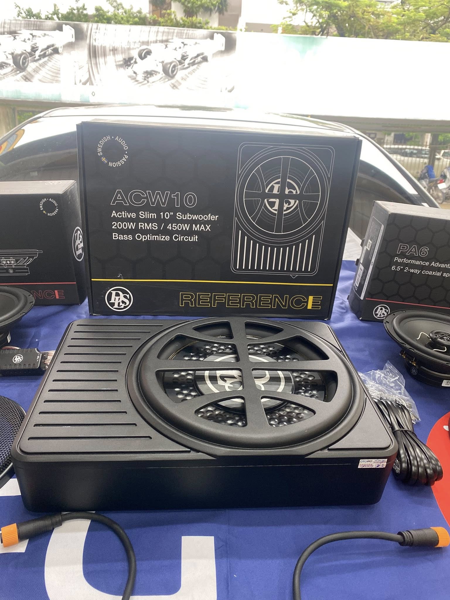 Loa sub điện là bộ phận tái tạo dải âm trầm - siêu trầm trong hệ thống âm thanh xe hơi. Loa sub điện gồm 1 loa subwoofer và 1 ampli tích hợp sẵn, được đóng trong thùng. Đường kính loa sub điện ô tô thường là 8 hoặc 10 inch. Các dòng loa sub điện trên thị trường thường có công suất RMS khoảng 150 Watts, công suất Max khoảng 400 Watts. Nhờ tích hợp sẵn cùng ampli trong thùng nên 1 bộ loa sub điện có kích thước nhỏ gọn, dễ lắp đặt. Loa sub điện tường được lắp ở dưới ghế phụ hoặc chỗ để chân ghế phụ. Chiếc xe Kia K3 trong bài viết sử dụng loa sub điện DLS ACW10, đường kính loa sub 10 inch, công suất RMS 200W.