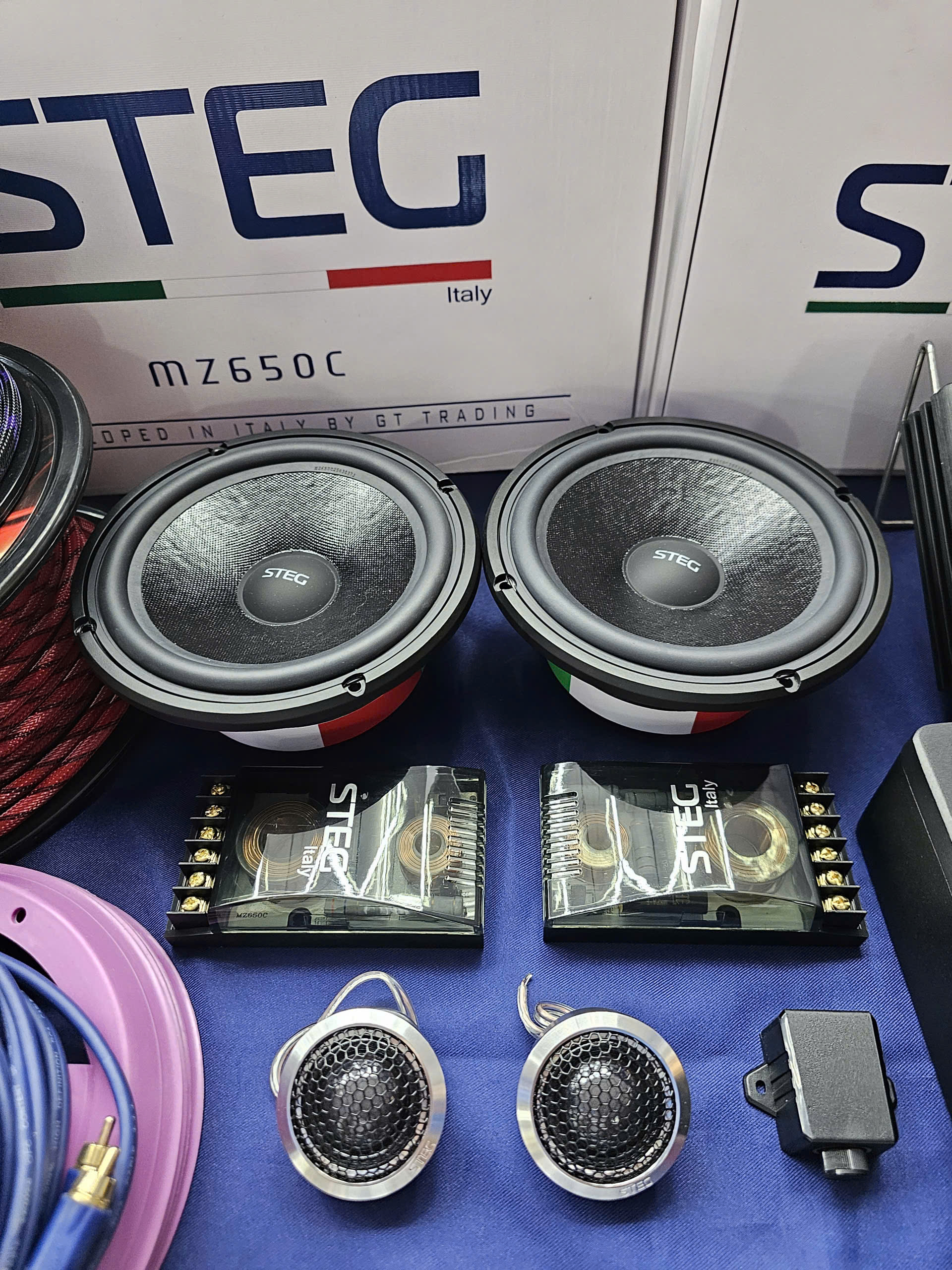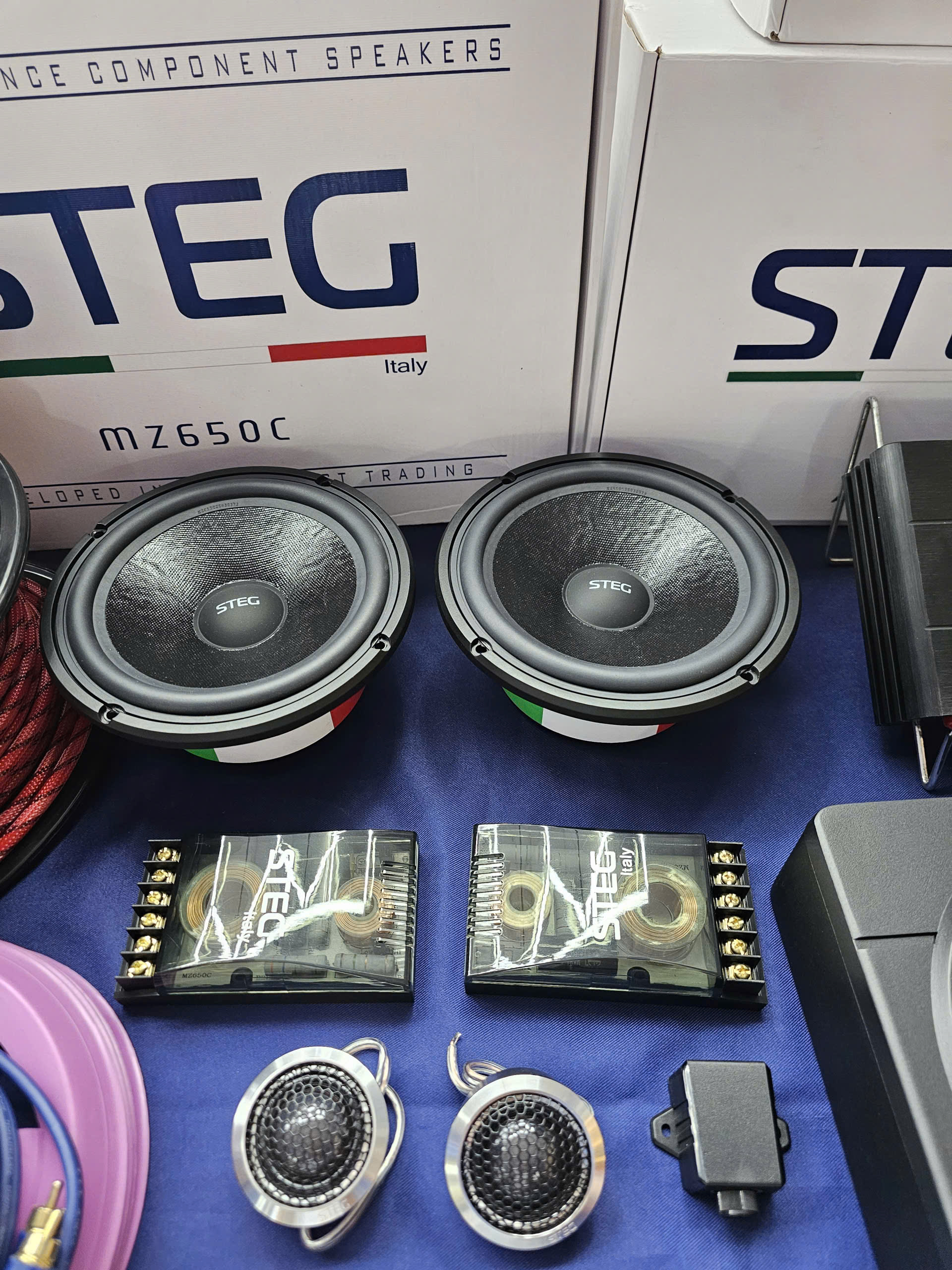 - Cặp loa cánh sau là STEG MS650, loa 2 đường tiếng (2-way). Bộ loa gồm 2 loa mid-bass và 2 loa treble.